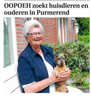 In het Purmerends Nieuwsblad van 24 november 2016 verscheen een leuk artikel over Stichting OOPOEH. We hopen in de regio Purmerend nieuwe OOPOEH's te mogen verwelkomen.