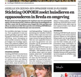 In Stadsblad Breda verscheen op 16 november 2016 een leuk bericht over Stichting OOPOEH! We hopen weer nieuwe OOPOEH's in Breda en omgeving te mogen verwelkomen.