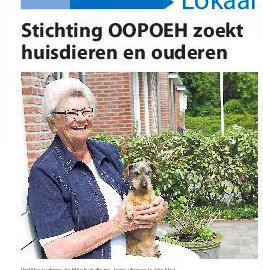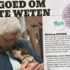 In de Gezond & Wel editie van het AD stond op maandag 7 november een mooi verhaal over OOPOEH Herna en haar fijne match met hondje Punk. Herna vertelt in het artikel dat ze elke week als Punk komt een nieuwe wandeling et hem maakt. Ze zegt: "eigenlijk is Punk een soort kleinkind." De special lichtte initiatieven voor ouderen uit en gaf daarin paginagroot aandacht voor Stichting OOPOEH. We zijn blij met de aandacht en het mooie verhaal van OOPOEH Herna.