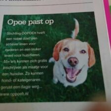 Wat leuk we staan ook weer in de Kampioen! Het ledenblad van de ANWB. "Stichting OOPOEH heeft een nobel doel: een actiever leven voor ouderen en een leuker leven voor huisdieren. 55+'ers kunnen zich gratis inschrijven als maatje voor een huisdier. Zo kunnen hond- of kateigenaren gerust een dagje weg..www.oopoeh.nl"