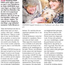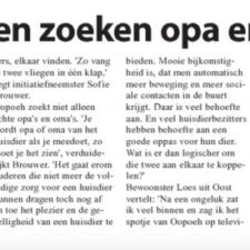In de 'Huis van de Wijkkrant' Lydia (in Amsterdam Oud Zuid) was een mooi succesverhaal te lezen van een mooie OOPOEH-match uit die buurt. We zijn enorm blij met deze zichtbaarheid en hopen dat er zich weer nieuwe OOPOEH's aan zullen sluiten na het lezen van dit bijzondere verhaal. Lees het succesverhaal hier (pagina 11): http://bit.ly/hvdwkrant-Lydia_1feb16