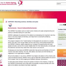 2012 - Het Europees Jaar van actief ouder worden en solidariteit tussen de generaties Het Europees Jaar van actief ouder worden en solidariteit tussen de generaties moet mensen ervan doordringen hoe belangrijk de bijdrage van ouderen aan de samenleving is. Het probeert beleidsmakers en betrokkenen op alle niveaus te stimuleren om zich in te zetten voor betere mogelijkheden om actief te blijven en voor meer solidariteit tussen de generaties. Wat bedoelen we met actief ouder worden? Actief ouder worden betekent dat we lang gezond blijven, als volwaardig lid van de samenleving blijven meetellen, voldoening blijven vinden in ons werk en in het dagelijks leven zo min mogelijk op anderen zijn aangewezen. Ook als we ouder worden, kunnen we een rol blijven spelen in de samenleving en plezier in het leven hebben. We moeten onze mogelijkheden zo goed mogelijk benutten, ook als we niet meer zo jong zijn. Het Europese Jaar 2012 stimuleert actief ouder worden op drie gebieden: Werkgelegenheid – kansen voor ouderen op de arbeidsmarkt worden verbeterd. Deelname aan de samenleving – Het Europees Jaar vraagt meer erkenning van de rol van ouderen in de samenleving en probeert om de voorwaarden daarvoor te verbeteren. Zelfstandig wonen – Actief ouder worden betekent ook dat we ouderen de kans geven om zelf zo lang mogelijk baas te blijven over hun eigen leven. Stichting OOPOEH is opgenomen als initiatief dat meewerkt om senioren actief ouder te laten worden en de solidariteit tussen generaties te vergroten.