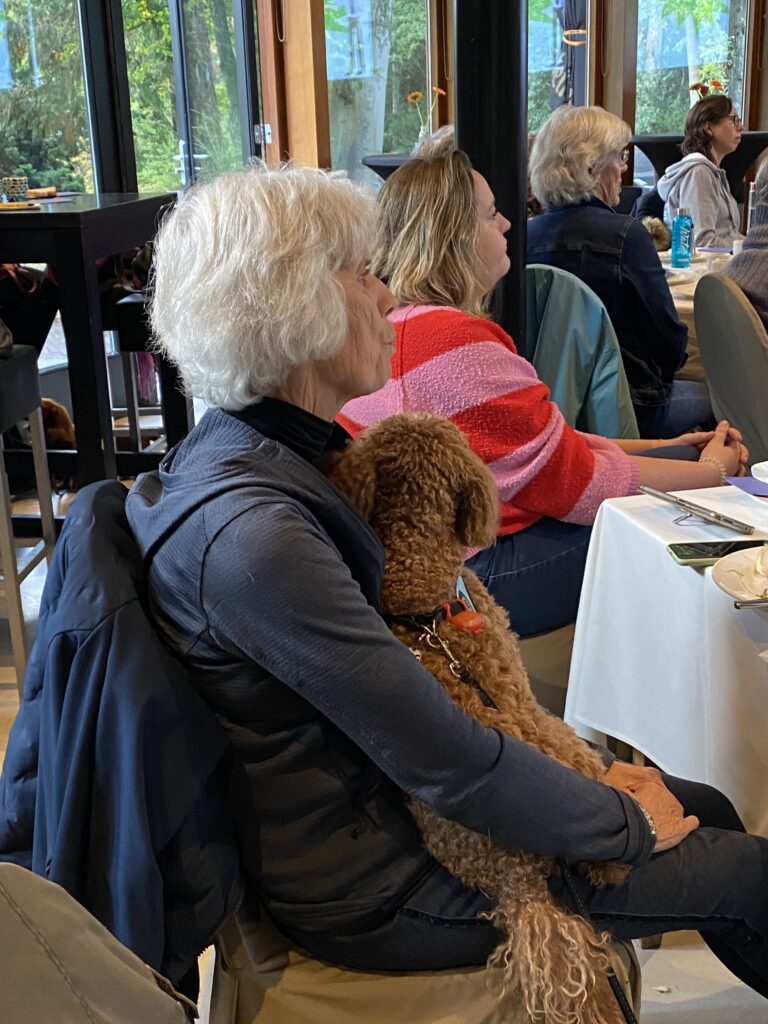 Speciaal voor alle prangende vragen van onze OOPOEH’s en baasjes reisde onze geweldige ambassadeur (en tevens bekendste hondencoach van Nederland) af naar Apeldoorn! Wat een passie, enthousiasme én kennis heeft Jeroen toch! “Wat moet ik doen als…..” “Wat als mijn oppashond….” Geen vraag was hem te gek en hij gaf overal een even kundig als geduldig antwoord op. Jeroen, wat zijn we toch ongelofelijk blij met jou! En wat hebben we weer veel geleerd. Na de succesvolle Vraag maar raak sessie was het tijd om even de benen/pootjes te strekken!