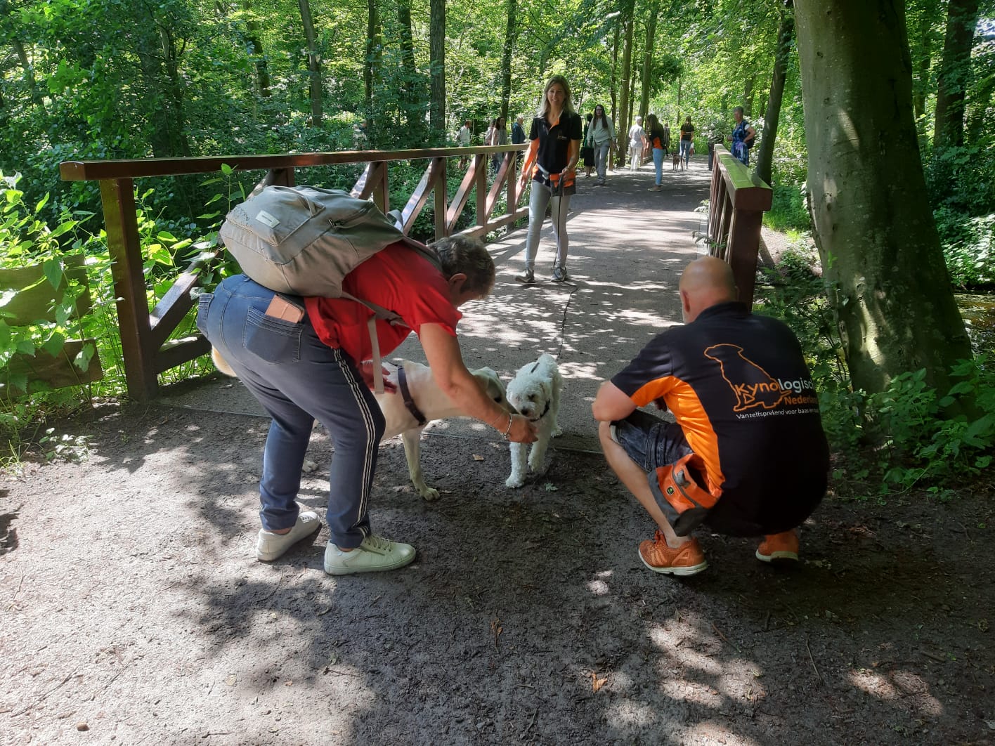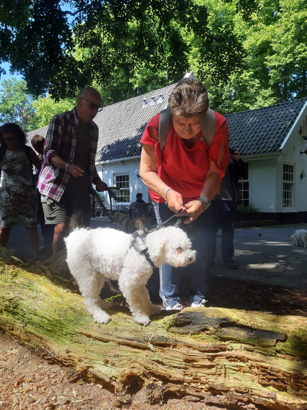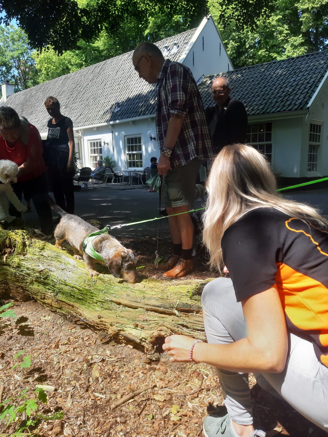 Onder deskundige begeleiding van onze ambassadeur Jeroen Oomen de hondencoach en zijn team werd er daarna door de hondjes volop geklommen, gespeurd en gesprongen. (Ja, we trokken nogal wat bekijks) We leerden hoe je samen met je (oppas)hond nog meer uit een wandeling kunt halen.