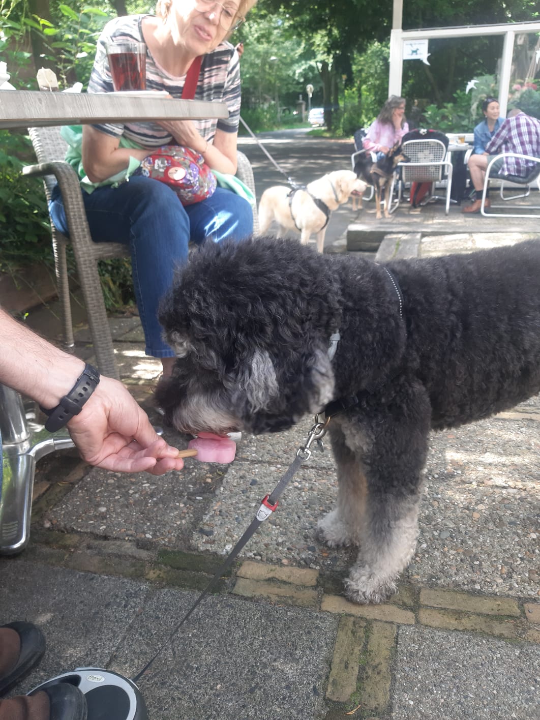 Op het terras van Taverne Meer en Bosch in Den Haag was het een warm weerzien! De OOPOEH’s kletsten er meteen gezellig op los en de meegebrachte oppashondjes snuffelden, knuffelden en smikkelden van speciale hondenijsjes. Benieuwd? Het Seniorenjournaal maakte een mooie reportage over dit uitje, bekijk het hier.
