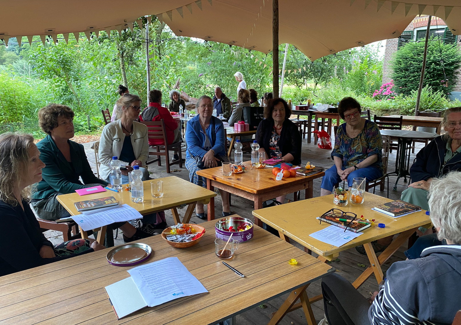 Na eerdere geslaagde online leesclubs konden we eindelijk een èchte editie met Marjan Berk organiseren. En wat was het leuk zo met z’n allen in de tent bij Buurtboerderij Ons Genoegen.