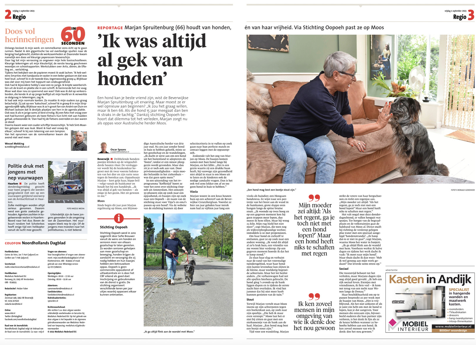 Twee pagina’s maar liefst, vulde het mooie succesverhaal van OOPOEH Marjan uit Beverwijk en haar oppashond Moos.