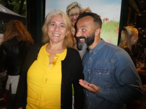 Loretta Schrijver, altijd aardig, staat ook geamuseerd toe te kijken. “Jij lijkt erg op je tekening,’ zegt ze.