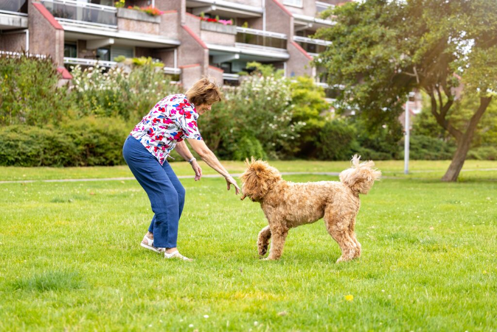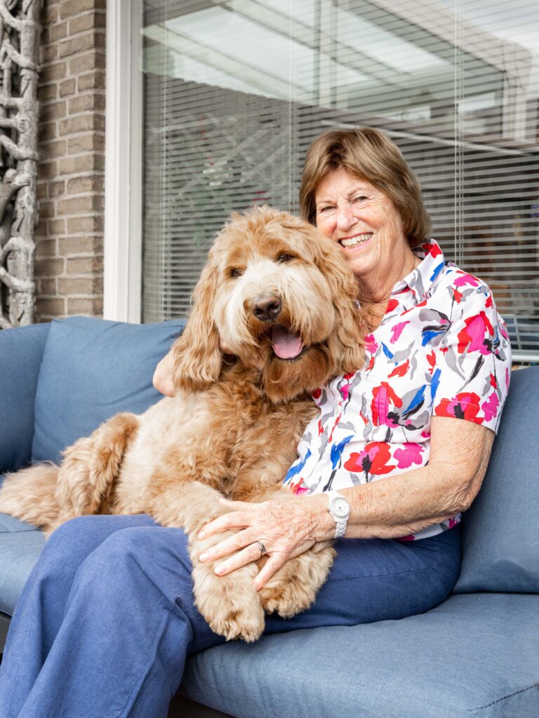 Hetzelfde geldt voor Marieke, het baasje van Bob: “Wij noemen het altijd gekscherend ‘ons Meta-rijkdom’. Bob is dól op Meta! Zodra ik de deur van de auto open, rent hij keihard bij haar naar binnen. Zo blij! Dat maakt het voor ons heel fijn. Met Meta hoeven we ons niet druk te maken om Bob terwijl we aan het werk zijn. Het zit wel goed tussen die twee. Toen Bob en Meta elkaar ontmoetten was Bob best een onzekere hond, maar door Meta en hun gezamenlijke uurtjes op het hondenveldje achter haar huis is Bob nu goed gesocialiseerd. En voor mij is het ook heel gezellig! Na de oppasdag drinken we gezellig samen een wijntje en kletsen dan bij. Al bij de eerste ontmoeting voelde ik de connectie, we hebben meteen 1,5 uur zitten praten. Het doet mij zoveel plezier, dat ik voor Meta regelmatig een bloemetje of cadeautje meeneem. Ik vind het echt fantastisch en hoop dat Meta nog heel lang Bob’s OOPOEH blijft. Want het kan nooit meer zo leuk worden als het met Meta is!”.