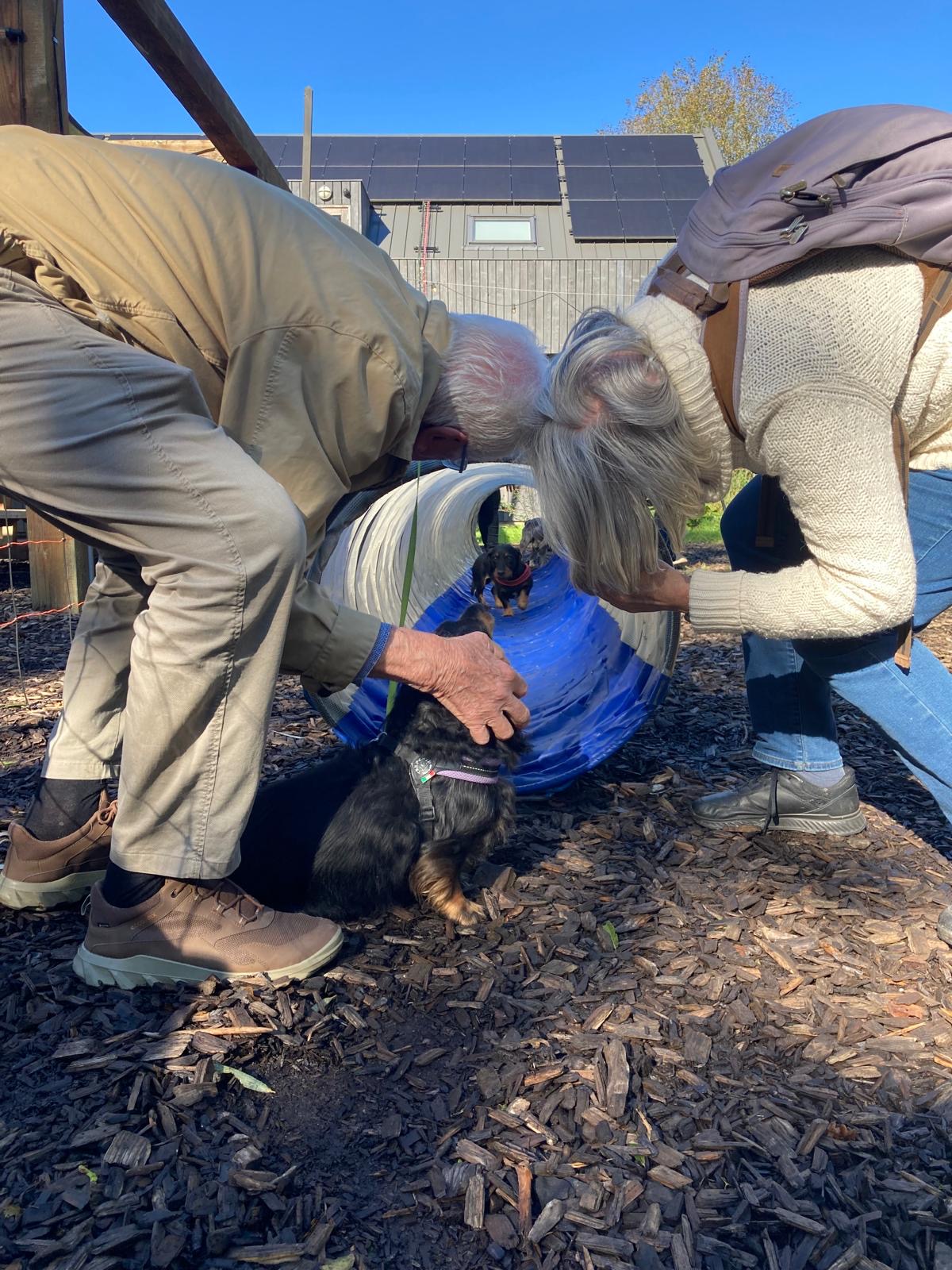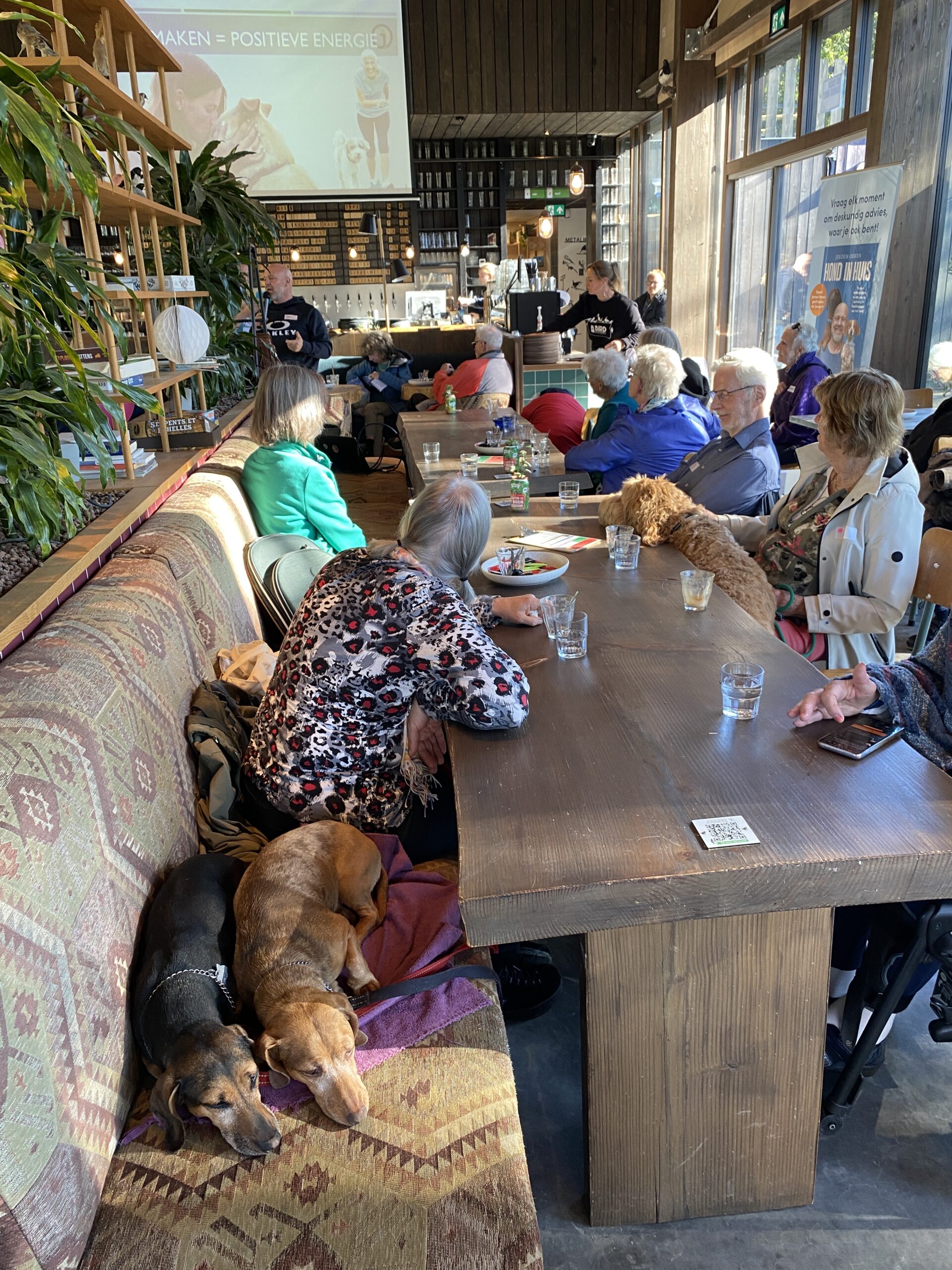 Niet alleen werden er allerlei interessante inzichten opgedaan tijdens de superenergieke en interessante lezing van Jeroen Oomen, ook heeft hij samen met zijn team al die vrolijk kwispelende oppashondjes in het zonnetje gezet op de verschillende parcours. James, Simon, Sammy, Bowie en Bob…wat sloofden ze zich uit voor een lekkere snack. Wat een feest om die leukerdjes zo hun best te zien doen en zo lekker met hun OOPOEH te zien genieten. Lieve Jeroen Oomen de hondencoach, wat is het toch altijd een feest met jou en je team erbij!