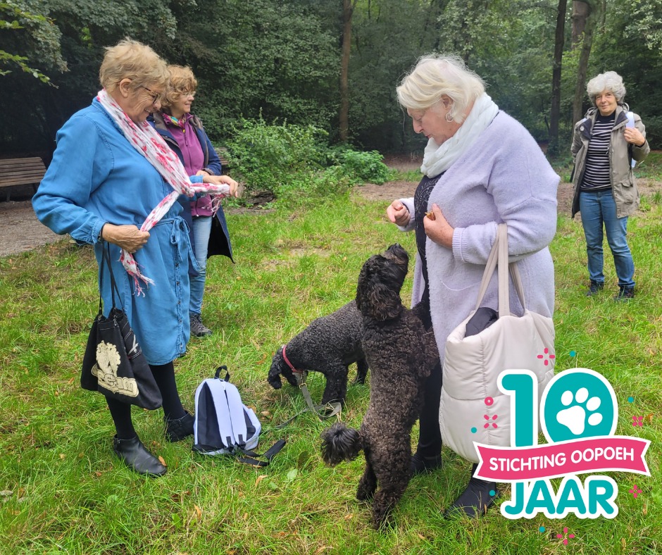 Wat wordt er toch met ongelofelijk veel plezier op die lieve honden gepast, en wat werd er dan ook vrolijk gekwispeld en gespeeld. Wandelen met deze lieve OOPOEH’s en honden was ècht een feest! Het was heel fijn om te zien hoeveel gezelligheid de OOPOEH’s onderling hadden. Er zijn dan ook verschillende nieuwe wandelafspraken gepland.