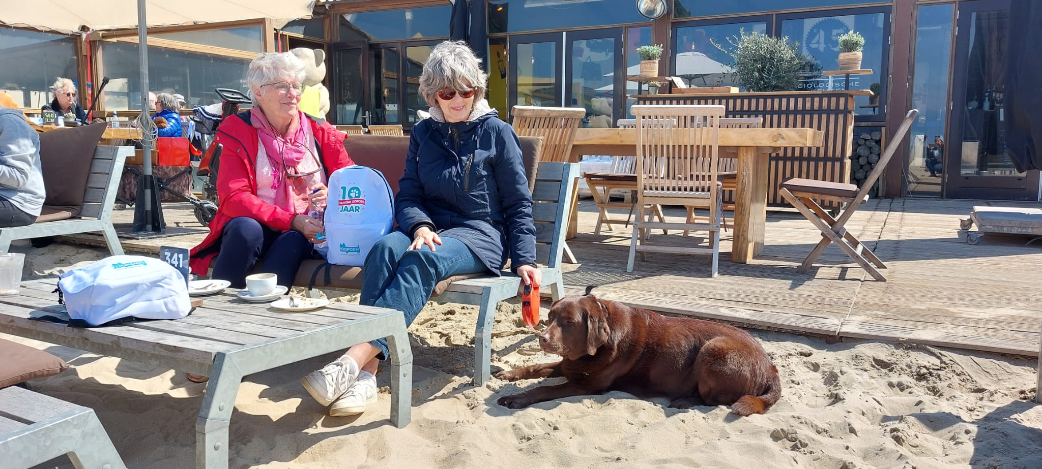 Lieve aanwezige OOPOEH’s, heel veel dank voor jullie feeststemming. Wat hadden we het fijn samen. (Vrijwilliger) Claudia en (stagiair) Jonna, bedankt voor jullie warme bijdrage aan dit topuitje. Strandpaviljoen De Staat, wat hebben jullie ons verwend. En onze speciale dank gaat uit naar Purina die onze jubileumrugzakjes belangeloos vult met lekkers voor de hondjes en de OOPOEH’s. Wandelt u ook graag met ons mee? Kijk dan hier of er een wandeling bij u in de buurt plaatsvindt en geef u op. Zowel OOPOEH’s als andere 55-plussers die graag kennismaken met Stichting OOPOEH zijn welkom om met ons mee te wandelen.